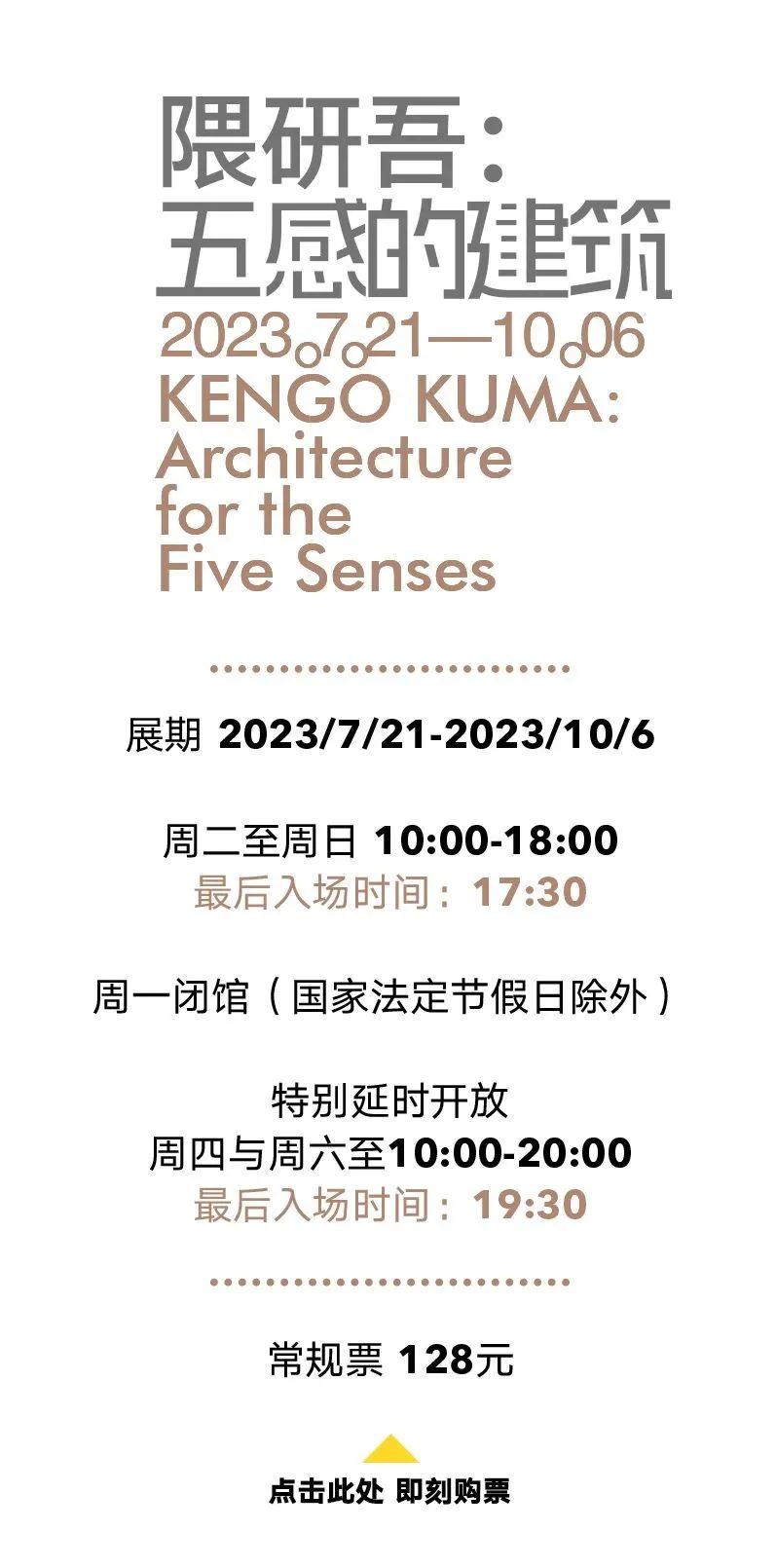 *场馆开放时间为每周二至周日10:00-18:00,周四与周六特别延长开放至10:00-20:00。