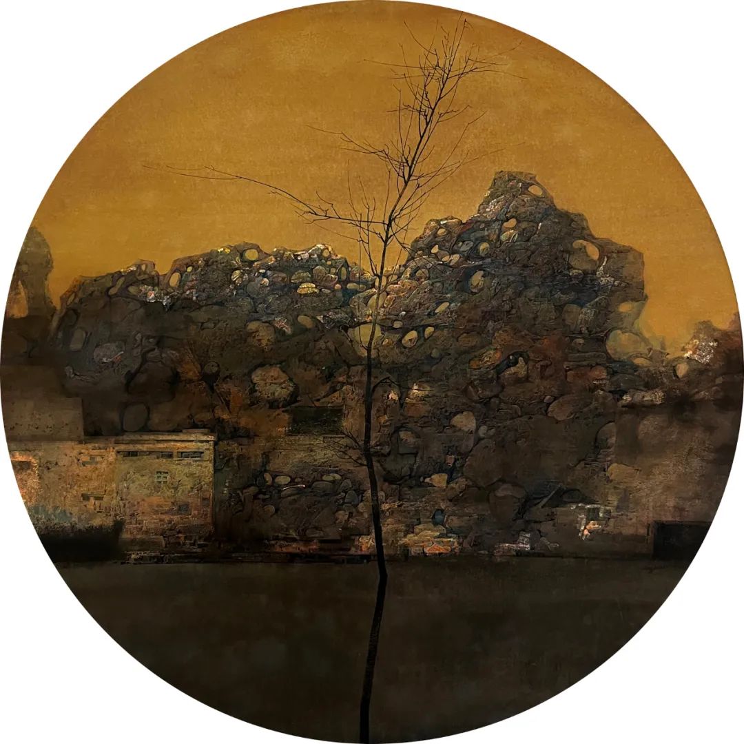 龚建军《国风之蕴-湖石图》100×100cm 水彩