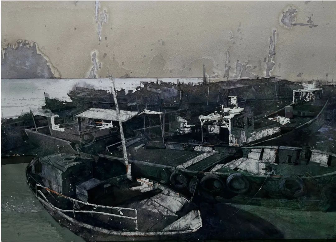 孙若程《潮落轻摆》78cm×110cm水彩