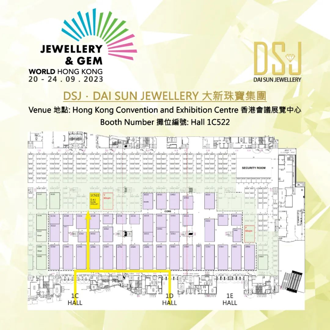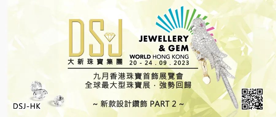 DSJ大新珠寶集團 | 攤位 HALL 1C522全球最大型珠寶展將強勢回歸,由 INFORMA MARKETS 主辦的九月香港珠寶首飾展覽會 即將於2023年9月20日至24日 假 香港會議展覽中心舉行。 我們誠意為您展示 部分新款設計鑽飾,在展覽會為您呈獻。-20 – 23 . 9 . 2023 (星期三至六) 10:00AM – 6:00PM-24 . 9 . 2023 星期日) 10:00AM – 5:00PM如果有任何詢問,可 致電 客戶服務熱線 或以 電郵 進行查詢。TEL: (852) 2508-0998| E-mail: marketing@dsj.com.hk--------------------------------紅磡體驗店: 香港九龍紅磡民裕街51號凱旋工商中心二期1樓H1室--------------------------------ios下載:https://itunes.apple.com/cn/app/id1438734269google