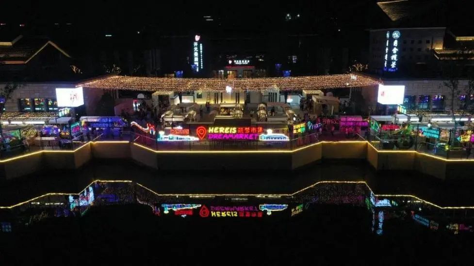 筑梦小镇中的筑梦夜市集别忘了去逛,这里集烧烤、啤酒、龙虾、露营为一体,可以感受到宿迁夜晚的活力满满。