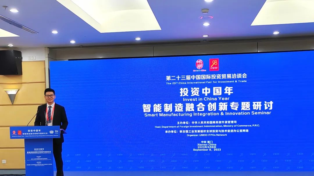 9月8日下午,由中华人民共和国商务部外资司主办,联合国工业发展组织全球投资与技术促进办公室网络(UNIDO ITPOs Network)承办的投资中国年·智能制造融合创新专题研讨成功举办。商务部外资司二级巡视员赵阳发表开幕致辞。