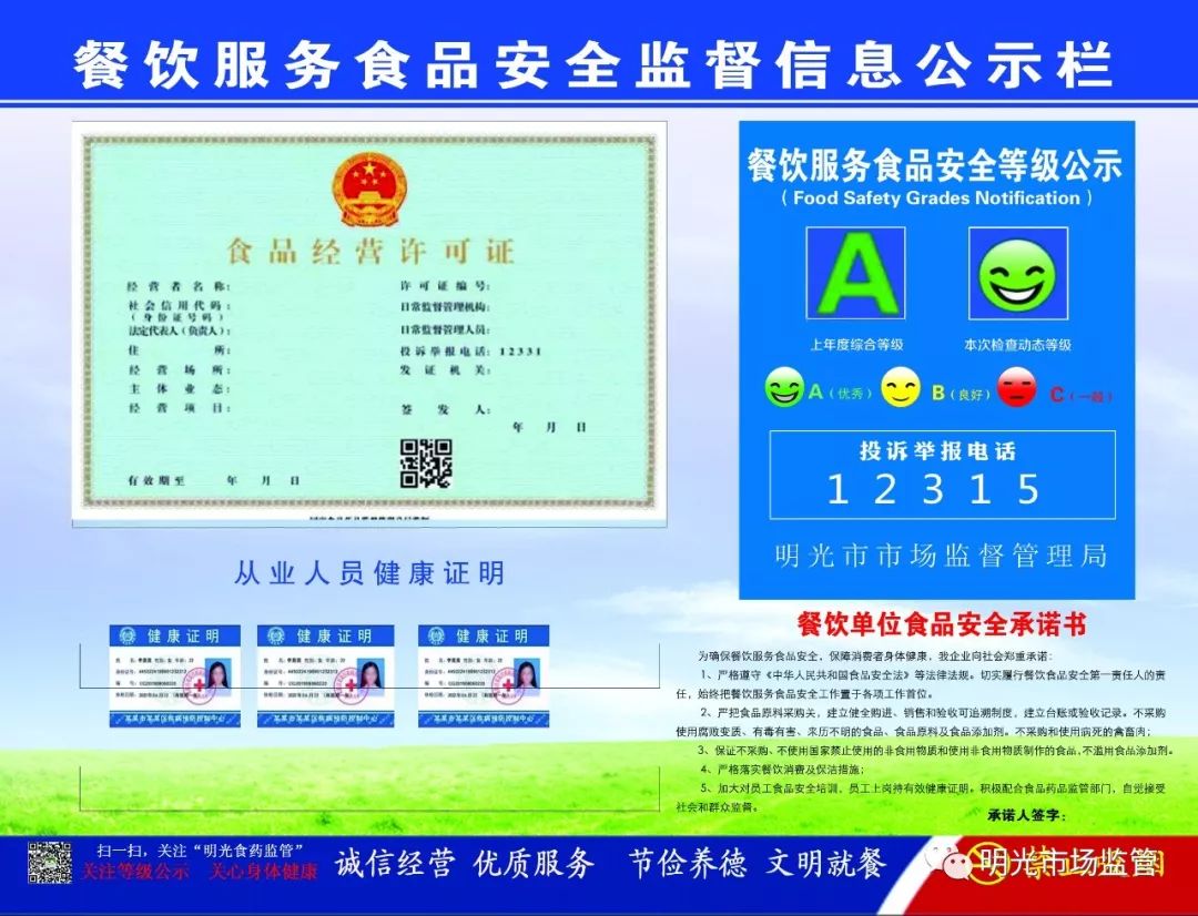 有证有照有微笑,人员健康卫生好;