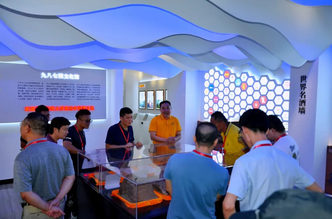 当天下午,陈子雄一行在九八七酒业副总裁谭锦泉的陪同下,依次参观了酱酒之源A1号酒库、九八七酒文化馆、九八七艺术馆等,领略了中华酒文化博大精深的魅力,对陈酱九八七酒的原料选取、12987酿酒工艺有了初步的了解。