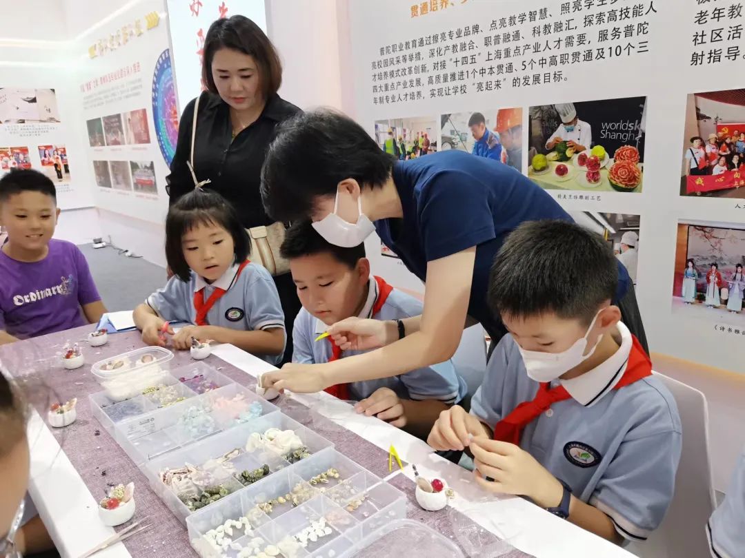 展会期间,来自普陀区洵阳路小学、上海师范大学附属第二实验学校、普陀区青少年教育活动中心、曹杨职业技术学校的师生团队还将开展“自制贝壳扩香石”“动物学家体验”“DIY手机支架”“中西方面点制作”等现场展示活动,邀请观众一同动手参与制作,感受现代科技和传统文化融合的魅力。