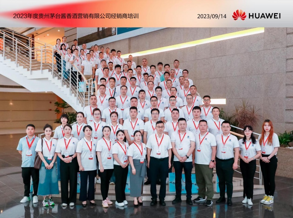 为持续做好经销商培训工作,不断巩固提升经销商市场运营能力,贵州茅台酱香酒营销有限公司从2022年至2023年持续组织经销商赴华为公司培训,截至目前,共组织经销商培训12场次,来自全国各地的经销商代表近500人完成培训课程。