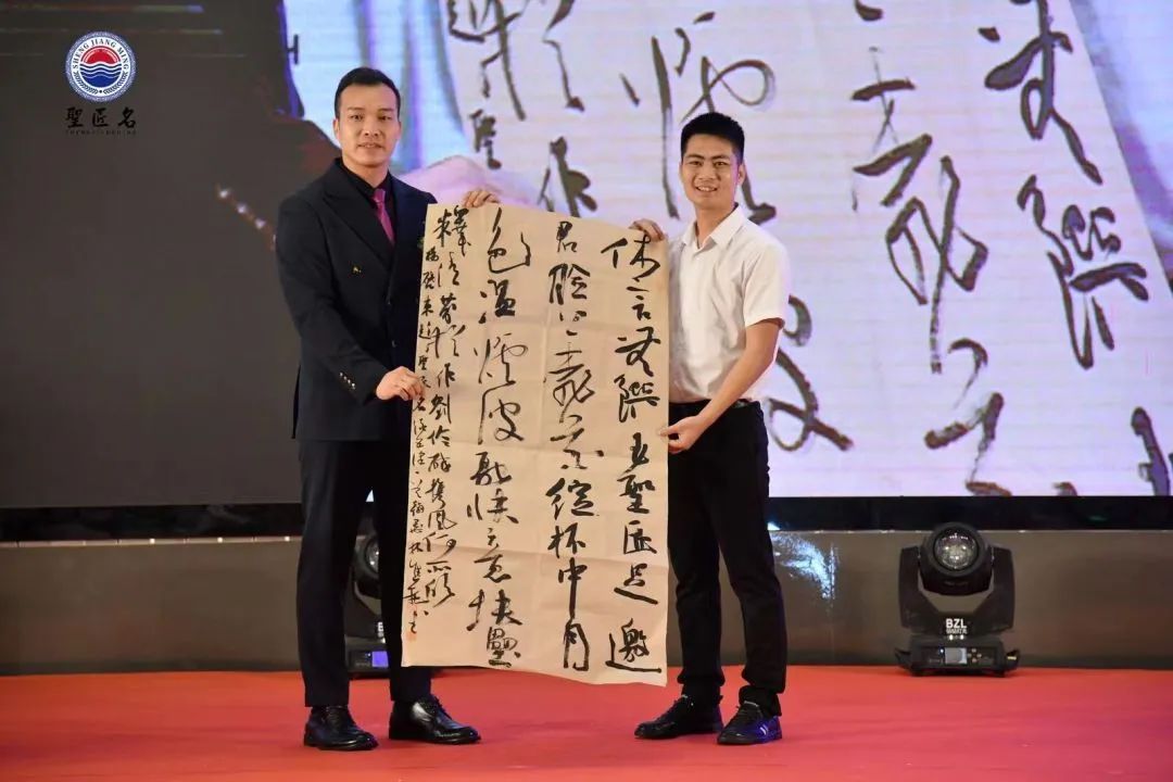 聖匠名酒广东总代理开业庆典暨招商品鉴会晚宴上,嘉宾给王总送上了充满心意的礼物