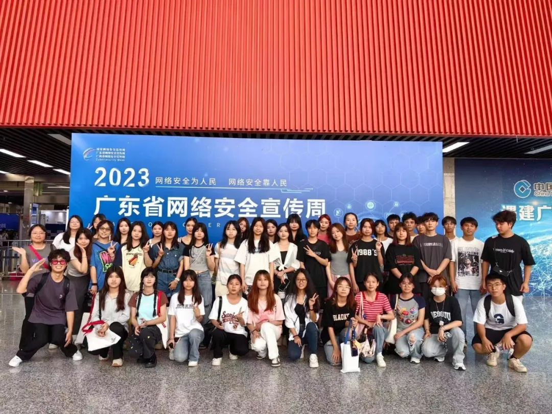 本次活动由3名专业教师带领22级会展专业全体学生前往琶洲展馆参观2023年广东省网络安全宣传周活动展,以小组为单位,让学生自由进行参观,并由科任教师穿插进行重点讲解和解答。