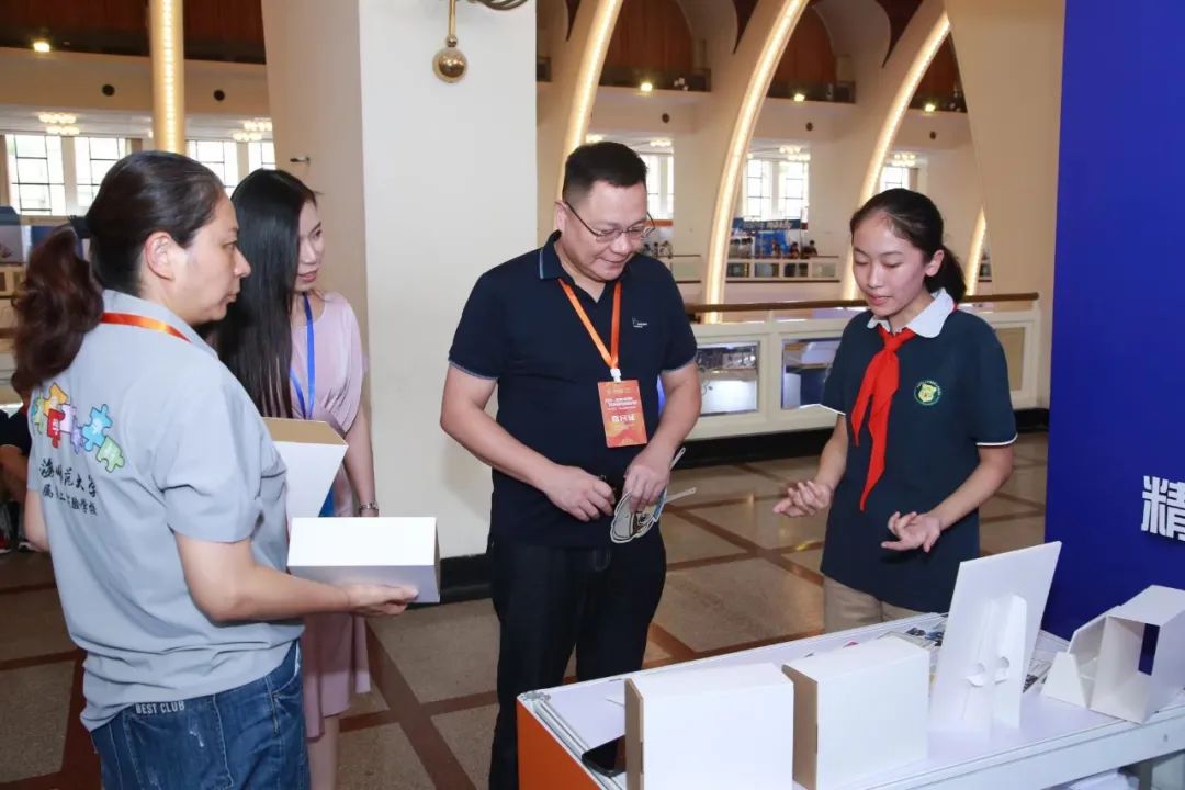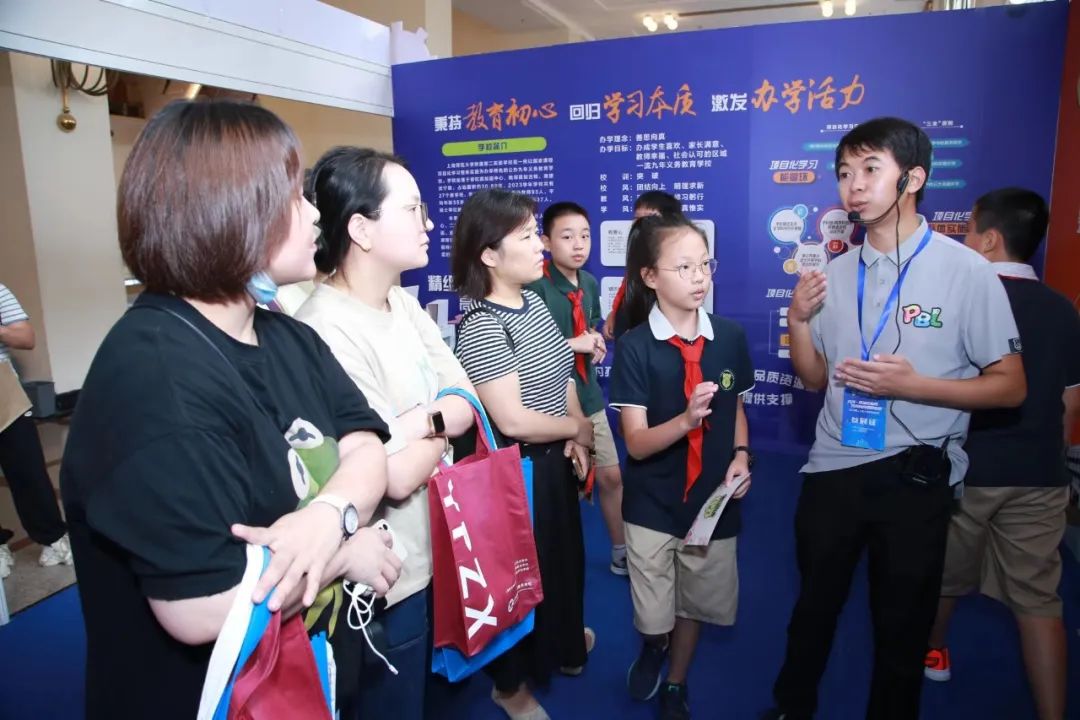 参展第一天,二实验展位始终人头攒动,吸引着每一位对项目化学习感兴趣的专业观众。他们不仅仔细观看展板,认真聆听学生的项目化学习介绍,还不断向老师和同学们提问。来自合肥的教育同仁还与学校领导洽谈,希望能得到项目化学习的专业指导。
