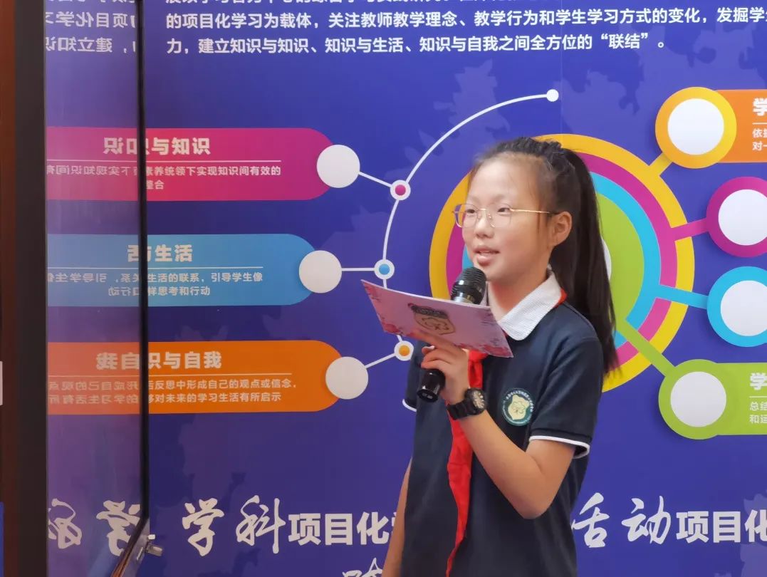 七位来自不同年级的同学分别就参与的学科、跨学科项目化学习进行了汇报展示。同学们结合自己的学习经历,用生动的语言向来宾们分享着他们对项目化学习的深刻理解,深深打动着每一位聆听者。二实验的项目化学习指导教师也毫不保留地向来宾介绍他们设计的项目化学习和在实施中积累的经验。