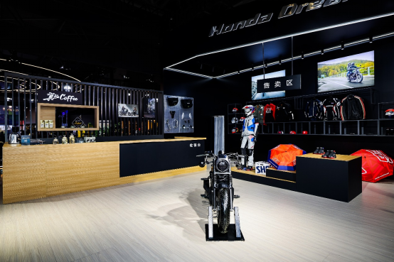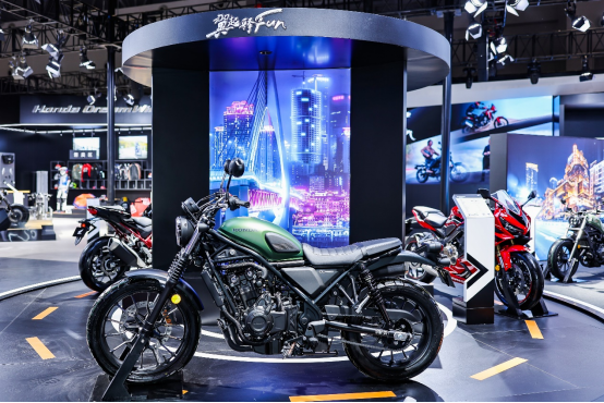 同时,Honda还带来了CM系列与CL系列的改装车型,在近期多家媒体发起的“翼起潮玩,释FUN型格”优秀改装作品征集大赛中最终获胜的用户,其改装车型也在Honda Motorcycle展台进行了展出,以座驾的个性玩法诠释着摩托车生活的更多FUN趣。在展台设计上也进行了更加创意化的打造,在展台内增加了创意旋转车型展台,吸引用户驻足体验。并带来了骑行周边售卖区、咖啡区等,构建出了多样乐趣的骑行生活空间。