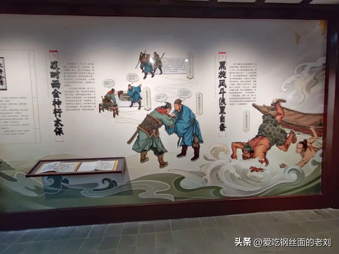 进入一层大厅里,一幅大型雕塑场面,写着:浔阳楼里说水浒。