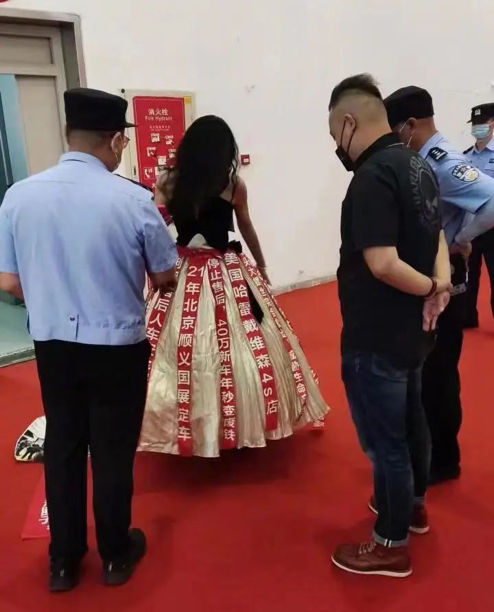 这位姐姐还没来得及去做一身新裙子,这次一下就被安保人员认出来了。