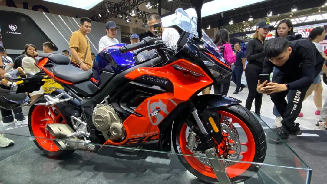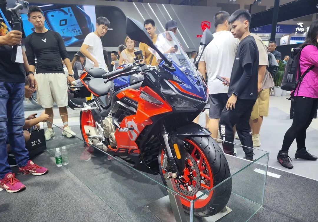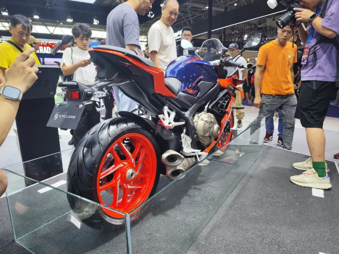 宗申赛科龙前几天重磅预告得仿赛车型RC680R终于在摩博会现场亮相。搭载水冷直列四缸发动机,发动机排量674CC,最大转速应该是在12000~13000转左右,单摇臂+排气双出,辨识度非常高
