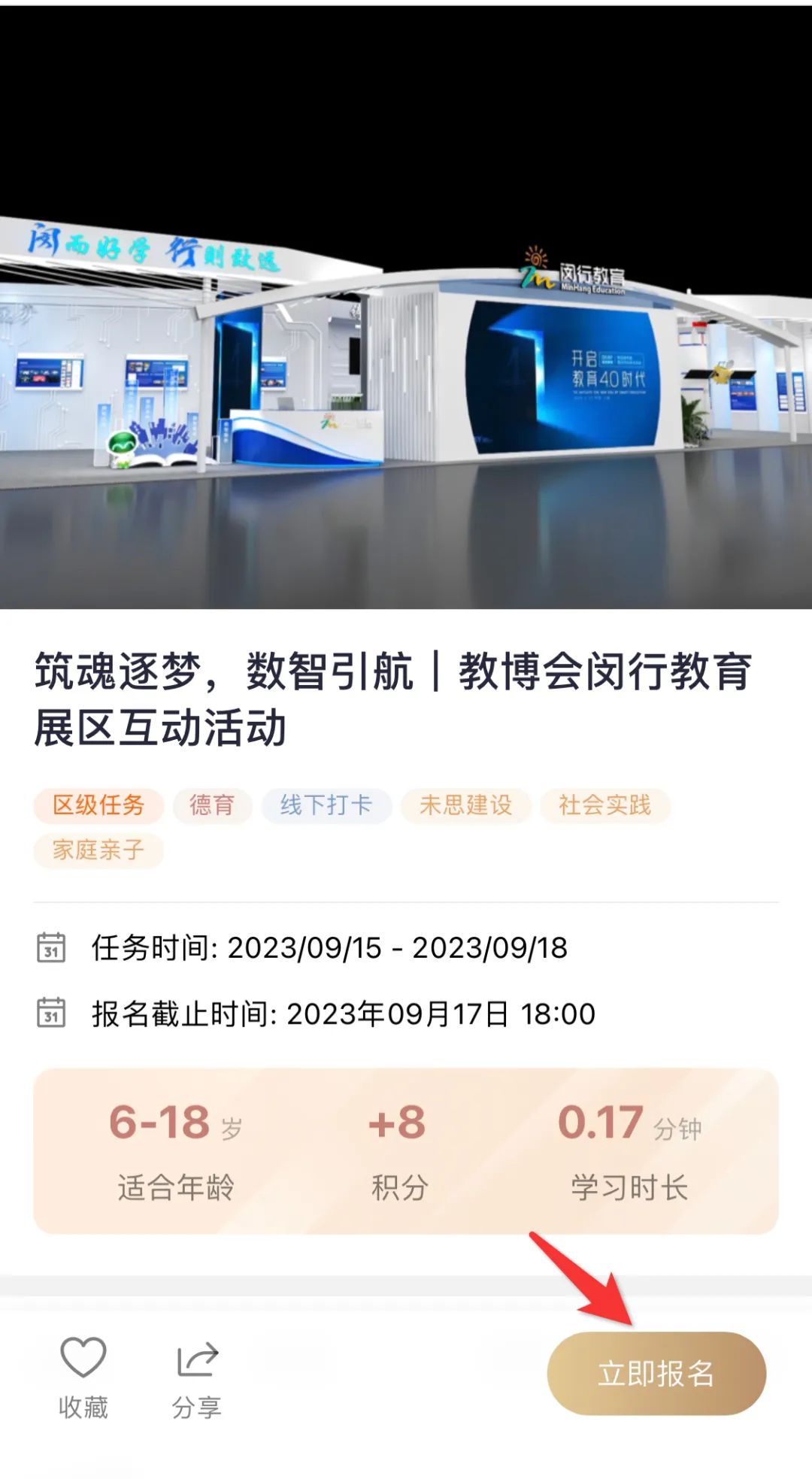 五育融合云空间上线教博会闵行教育展区互动活动,同学们现场观展后上传观展笔记,就有机会领取精美小礼品一份哦!不能去现场的同学,也可以通过云观展了解闵行教育展区哦!