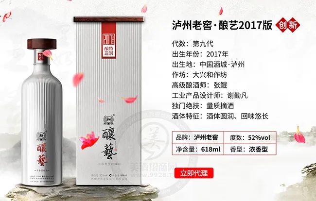 酿艺酒背靠中国·泸州老窖股份有限公司,拥有强大的品牌影响力和知名度,消费者对该品牌有着较高的认可度和信任度,因此在市场上更容易受到消费者的欢迎和青睐。