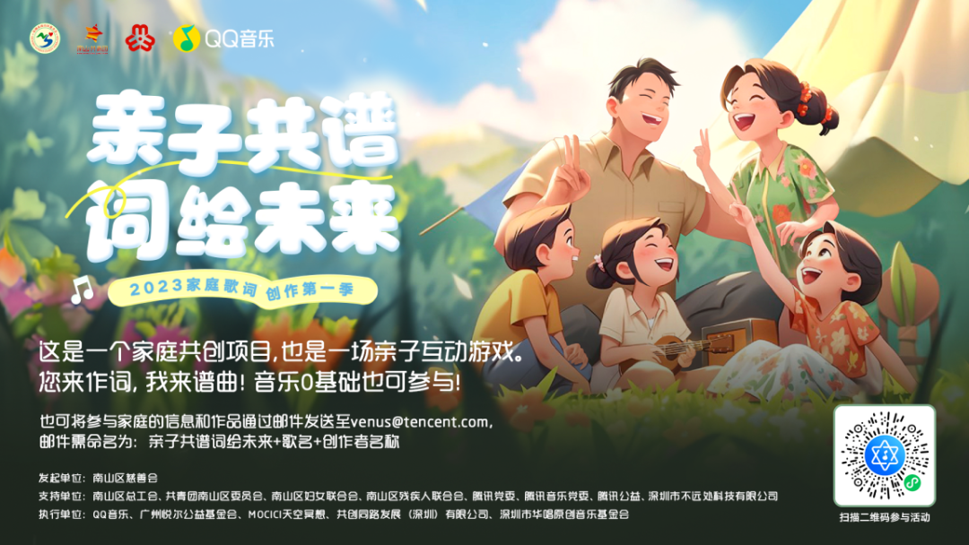 慈善事业是需要人人参与、人人共建的爱心工程。为了引导更多社会人士关注当下青少年儿童心理健康问题,南山区慈善会精心打造了“亲子共谱,词绘未来”家庭歌词创作公益项目,并且得到了QQ 音乐、广州悦尔公益基金会、 MOCICI 天空冥想等众多机构的大力支持。活动意在鼓励亲子陪伴,通过营造和谐家庭氛围,关爱青少年成长。
