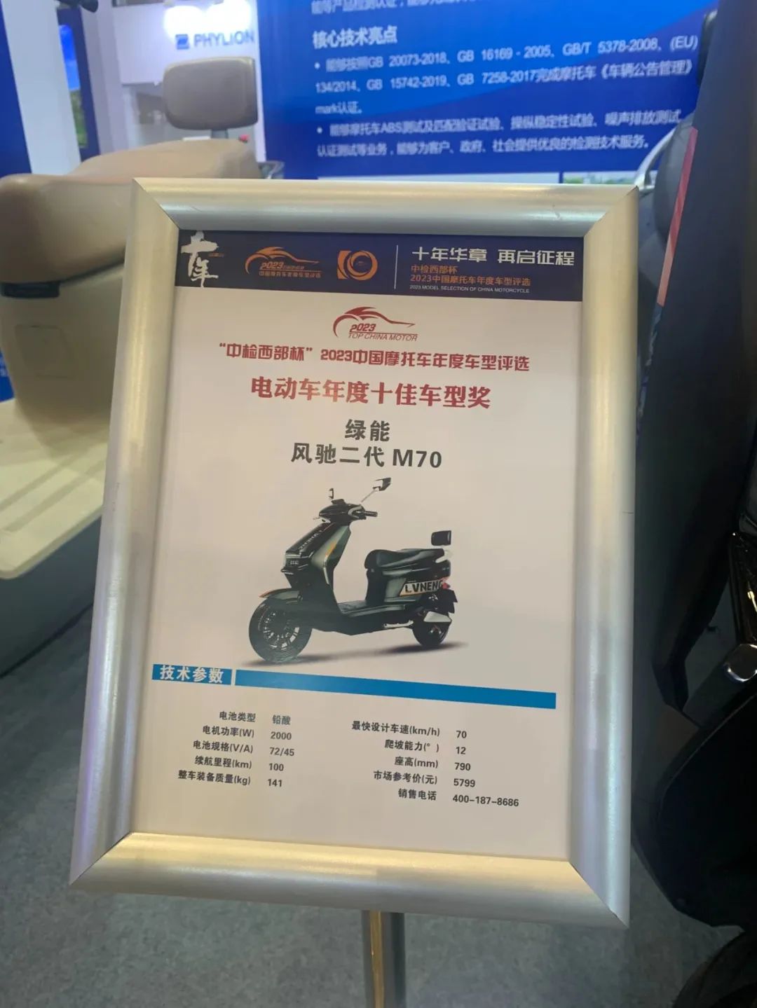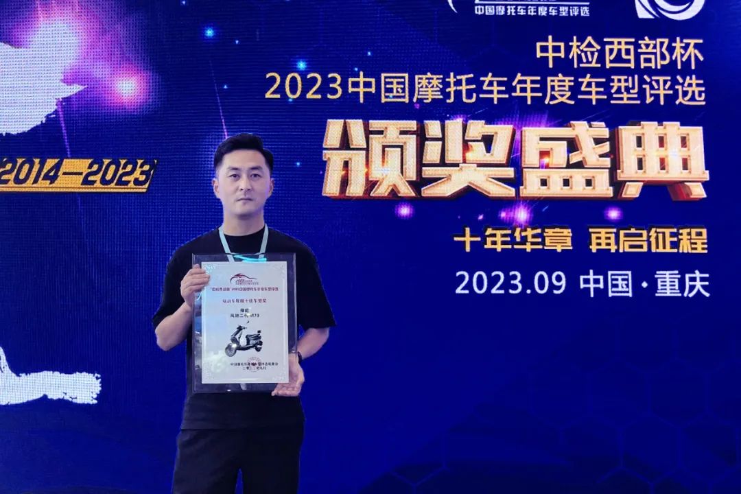 绿能高速真电摩——风驰二代M70斩获“西部中检杯”年度十佳车型奖,搭载2000W SE智速动力电机,三档变速(休闲/越野/超跑),可根据出行需求随意切换,在超跑模式下GPS实测时速可达70km/h。外形稳重、配置高端,M70可以称之为真正的重装战车,在摩博会现场一度吸引了众多全国众多摩友关注和追捧。