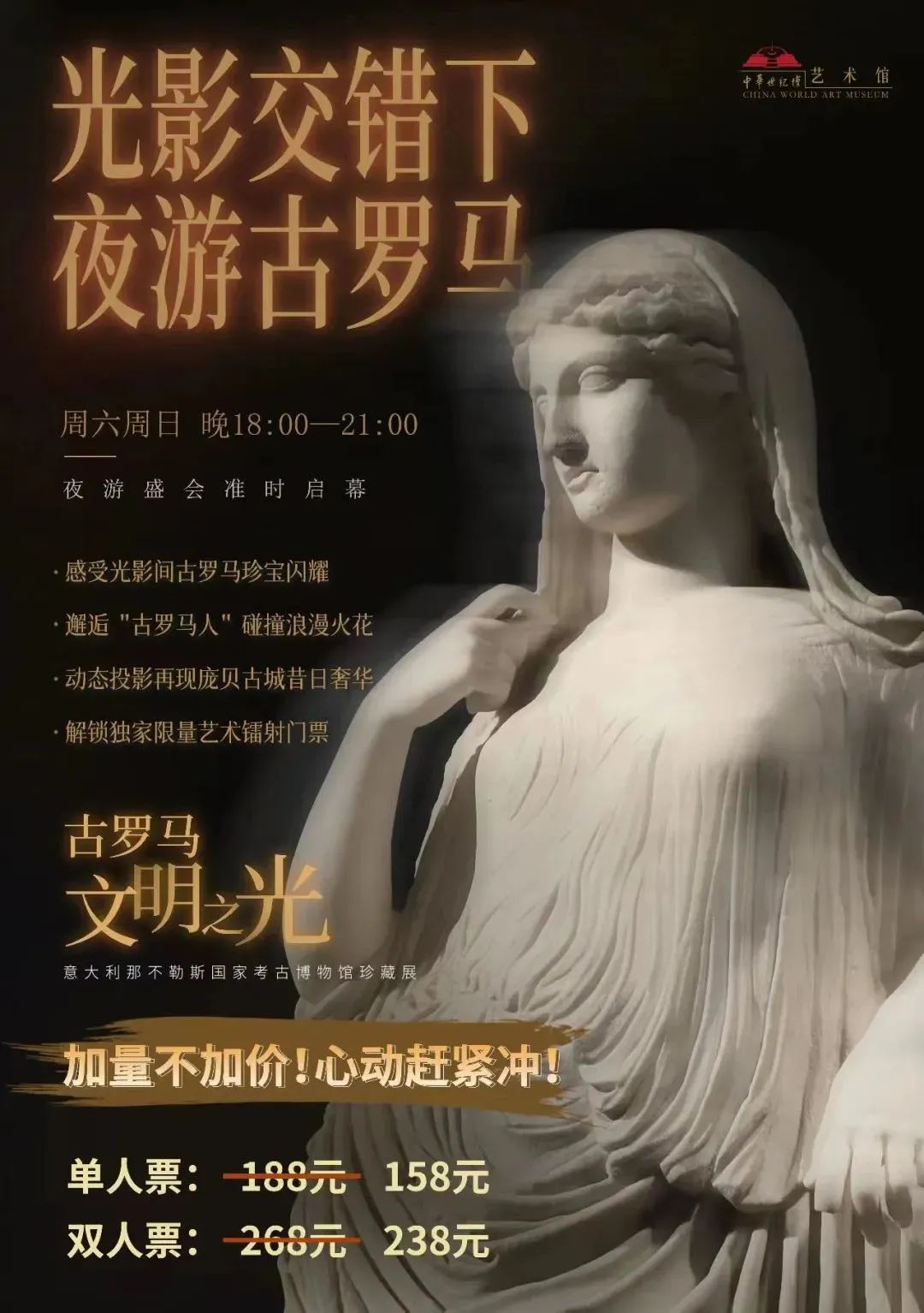 夜游世纪坛——“古罗马文明之光”夜场活动,以光影效果渲染出古罗马的神秘氛围,与梦共舞,以动静态投影技术勾勒出一个又一个震撼心灵的艺术画面。