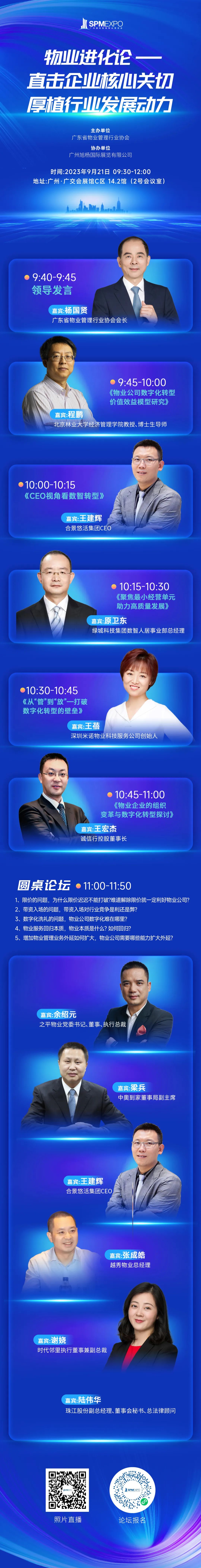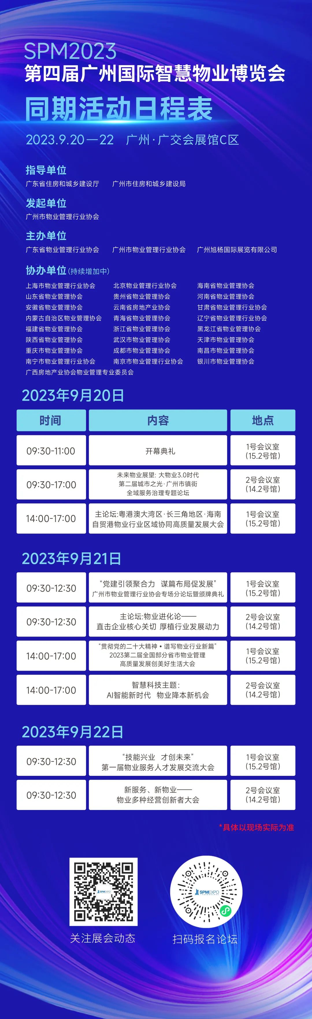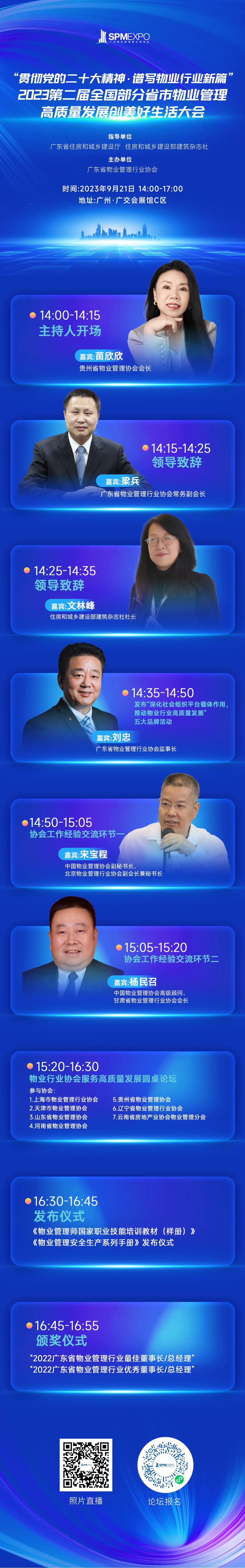 物博会同期将举行10余场高端专业活动,大咖齐聚,高峰论见促发展。在主论坛“粤港澳大湾区·长三角地区·海南自贸港物业行业区域协同高质量发展大会”和“物业进化论——直击企业核心关切 厚植行业发展动力”,将聚焦物业行业高质量发展核心话题和物业服务的本质,直指物业经济发展短板和问题,瞄准企业核心关切,为企业解惑解忧解压,厚植物业企业高质量发展沃土,为物业行业注入新势能。