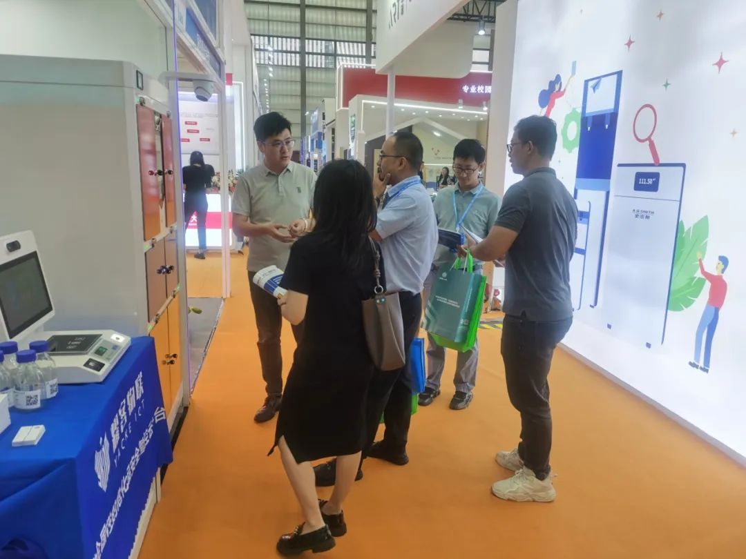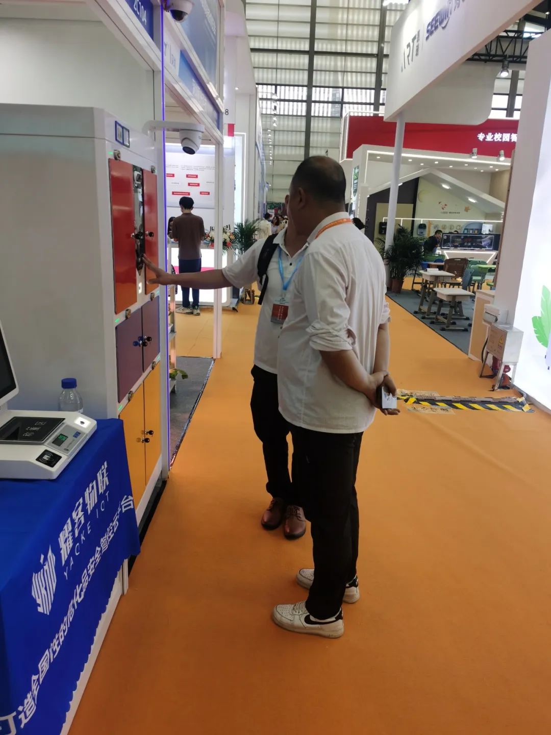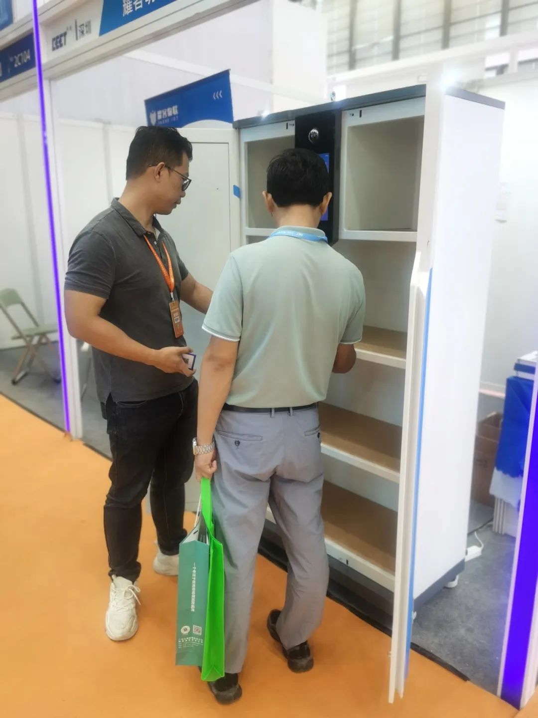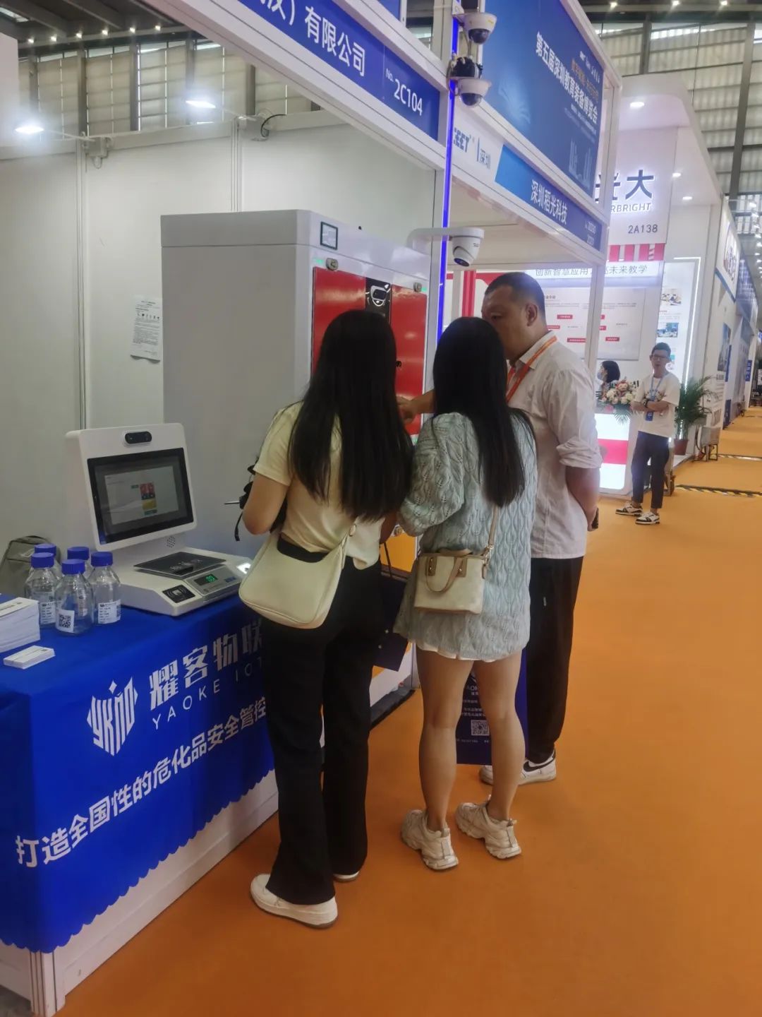 在耀客物联展位的实验室设备展示区,公司的同事详细介绍了实验室智能安全六门柜和标签打印机的操作流程。这两款产品是耀客物联新推出的主打产品,凭借其独特的功能和创新的设计,迅速吸引了大量参展人员的目光。