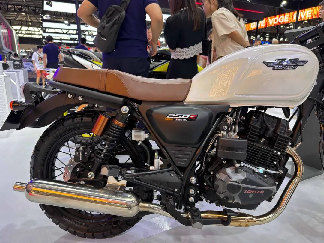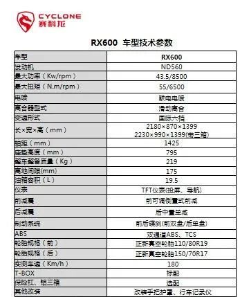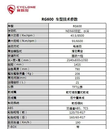 四缸,是很多摩友魂牵梦绕的一种情怀和追求,高亢的声浪、汹涌澎湃的动力输出,正是驾驶摩托车的最大乐趣之一。作为以动力起家的宗申品牌,自然不会缺席这一赛道。双定风翼的设计首次出现在赛科龙RC680R上面,铝合金单摇臂预示着这款车型并不好惹,还有没有更多让我们从未体会到的惊喜,让我们共同期待这款车型上市的那一天吧!整车尺寸为2055×760×1055(mm), 轴距1450mm,座高810 mm,最小离地间隙130 mm,整备质量206 kg,油箱容量17L,实测最高时速为200km/h。动力参数方面RC680R表现抢眼,搭载一台实际排量674mL的直列四缸水冷四气门发动机,最大功率58kw/9000rpm,最大扭矩60N.m/8000rpm,标配ABS+TCS系统,标配滑动离合器、双定风翼设计、铝合金单摇臂设计,按照赛科龙的一惯定性,单向快排是毫无疑问的,至于电子双向快排,让我们拭目以待。RC600搭载的ND560动力,让TA具备同级顶流的动力表现。RC是赛科龙的仿赛车系,仿赛也最受年轻人喜爱的车型,同时也是科技含量比较高的车系。继RC401\RC250之后,赛科龙的仿赛在今天进入了双缸560cc排量,除了ND560带来的澎湃动力表现RC600也用到了轻量化的铝合金单摇臂,最大功率43.5kW(8500r/min),最大扭矩55N·m(6500r/min),实测最高时速为190km/h。RC600同样采用轻量化的铝合金单摇臂,减震采用可调倒置式前减震与后中置单减震的组合搭配。制动则是采用前后碟刹,配备双通道ABS和TCS牵引力控制系统。TFT仪表,配备T-BOX,整车尺寸为2058×790×1130(mm), 轴距1430mm,座高800 mm,整备质量198kg,最小离地间隙140 mm,油箱容量15L。宗申展台上RG600,除了代号变得更大,它的心脏也变成了当前国产500-600排量之间功率最大、运转最顺滑的ND560发动机。RG600定位于大型GT车型,有着ADV车型更加灵活、更易掌控、更多的公路极限。无论城市、高速、山路,RG600都能很好地兼顾。针对RG车型特点进行调校,使得该动力平台更加符合 RG600的风格,也正是因此,RG600也成为了现在国产500~600排量之间功率最大、运转最顺滑的车型。标配滑动离合、TFT仪表、双通道ABS和TCS牵引力控制系统、T-BOX,可调倒置式前减震与后中置单减震。制动系统则是采用前后碟刹。21L油箱,整车尺寸为2140×830×1350(mm), 轴距1415mm,座高790 mm,整备质量208kg,最小离地间隙155mm。RX600搭载的ND560动力,具备同级顶流的动力表现。RX是赛科龙的休旅车系,RX3曾开启国内休旅先河。高大威猛的车身、560排量双缸水冷的动力,爆发43.5千瓦的最大功率,滑动离合、TFT仪表、倒置可调前减、前19寸后17寸真空轮胎等等,为车友带来一场极致驾控体验。出行+格调双重BUFF叠满的赛科龙250复古踏板。充满时尚气息的雅致外观,让骑者随时化身街头焦点,搭配XQ250的强劲动力和领先配置,将会是车友的挚爱之选。作为一款“萌”力十足的mini车型,全新的宗申150 mini运用了许多前卫的设计理念,萌萌哒的整体造型,搭配时下最流行的仿赛和攀爬风格,并配备了动力不俗的150发动机,堪称机车圈的时尚小钢炮,看上去就很好玩。相信会受到更多mini车爱好者的钟意,引领mini时尚风潮。 谁说跑车一定要流线的造型,150mini仿赛结合Cafe racer风格,可爱的同时不忘竞速天性,让骑行成为焦点,又酷又飒。经典的复古元素与现代美学结合,动感的造型设计,诠释出简洁而又纯粹的美感,将复古与现代科技的完美融合,前卫先锋。