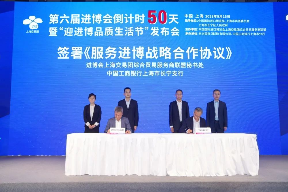 2023年9月15日下午,由进博局、市商务委、长宁区政府共同指导,进博会上海交易团综合贸易服务商联盟主办的第六届进博会倒计时50天暨“迎进博品质生活节”发布会在IBP国际会议中心成功举办。