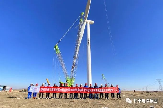2022年12月28日,随着ZX02风力发电机组叶轮与机舱在百米高空完成精准对接,甘肃电投酒汇公司高台盐池滩100兆瓦风电项目30台风力发电机组吊装工作圆满完成,标志着该项目并网发电进入倒计时阶段。