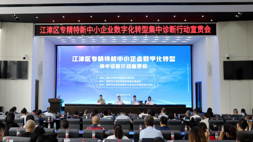 9月11日,为了深入贯彻9月1日启动会精神,江津区积极快速行动,在西部食谷培训中心4楼金桥大厅召开了江津区专精特新中小企业数字化转型集中诊断行动宣贯会。