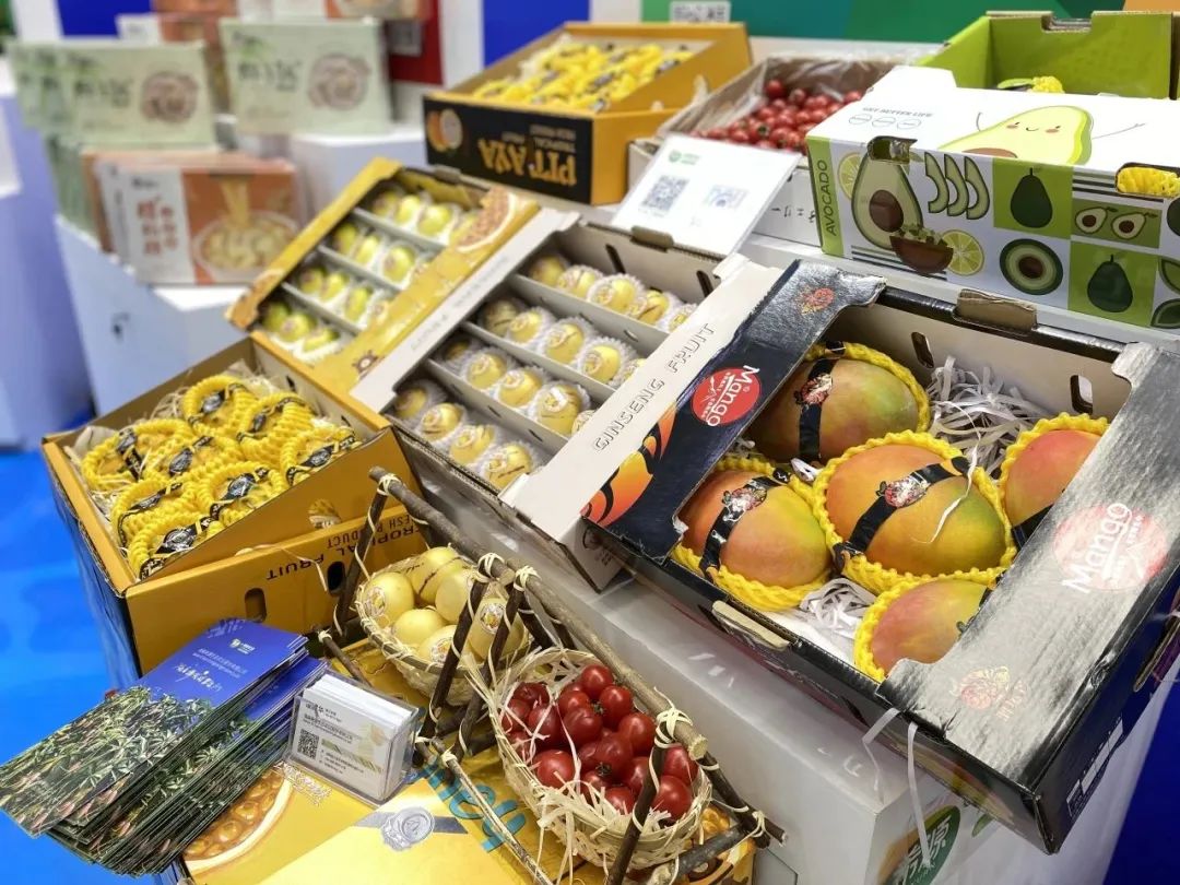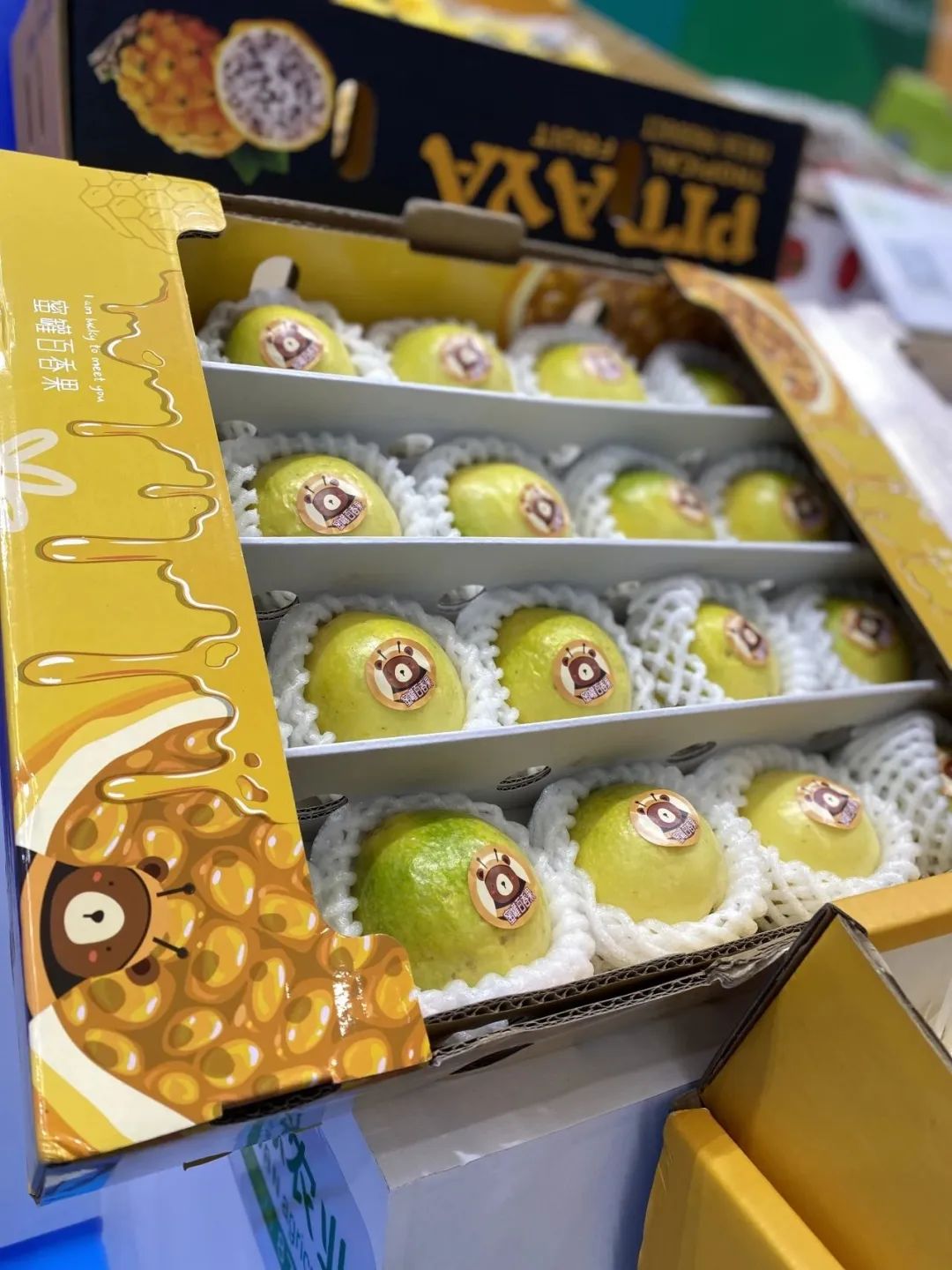 我们展示了天涯一品燕窝果、蜜罐百香果、枝熟人参果、哈斯牛油果、甜心小番茄、鸿运芒等热带水果。
