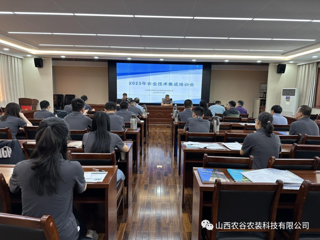 2023年9月15日山西农谷现代农业装备科技有限公司召开了2023年农业技术集成培训会,农机集团党支部委员、副总经理闫伟进行了开场致辞,农谷公司总经理王咏棠主持了此次培训会。