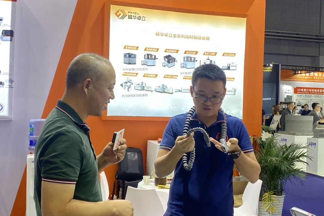在展位现场,峰华卓立公司展示了自主研发的粘结剂喷射金属3D打印设备BJM460和3D打印的金属/陶瓷/砂型等部分产品,展示了公司在近5年来多项装备与应用工艺领域的最新成果,获得了行业专家和新老客户朋友的广泛关注,成为本届TCT展会上的焦点之一。