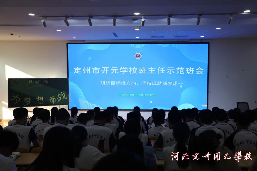 本次班会示范课以“明确目标找方向,坚持成就新梦想”为主题,王靖老师准备充分,设计精心。示范课内容丰富、形式多样、结构紧凑,既突出了班会主题,又达到了班会课育人的目的。