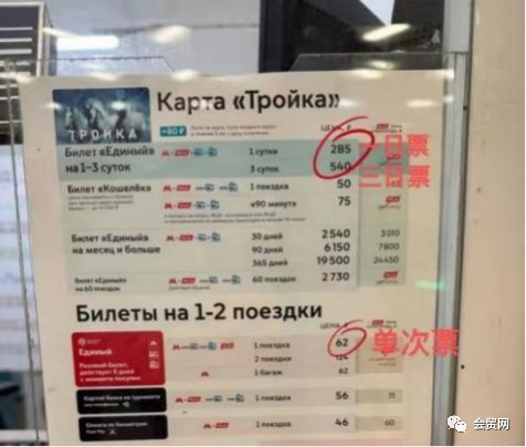 一 日票(一天内无限次) -285卢布(约21.5元)