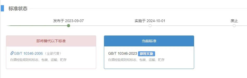 9月13日,根据国标委发布的《关于批准发布《公共信息图形符号第1部分:通用符号》等583项推荐性国家标准和6项国家标准修改单的公告》,由全国白酒标准化技术委员会归口的《白酒检验规则和标志、包装、运输、贮存》国家标准正式发布,国家标准编号为GB/T 10346-2023,本标准代替了GB/T10346-2006,实施日期为2024年10月1日。(全国食品发酵标准化中心)