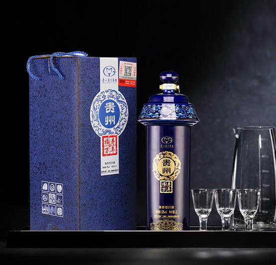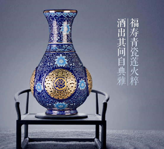 当美酒与美瓷完美邂逅,两种东方传统文化经典交融,成就了‘美不胜收’这个曼妙的词汇意境。贵州牌福寿万年酒,将名瓷名酒创造性融为一体,高贵典雅宜赏宜藏,被人们作为富贵、吉祥、实用、高贵、美观的象征。双瓷合璧,成就瓷中艺术珍品,具有很高的珍藏价值。贵州牌福寿万年酒陶瓷瓶体以《霁红釉玉壶春瓶》为原型,以《四海升平景泰蓝赏瓶》为蓝本等比例打造,高:51cm,肚径:30cm,足径:15cm。《霁红釉玉壶春瓶》, 2018年新加坡迎春艺术品专场拍卖会上拍出350万高价,价值高贵,现深藏于北京故宫博物院。以此为原型打造的《四海升平景泰蓝赏瓶》,在2014年APEC期间作为“国礼”相赠,在国际舞台上大放异彩。53度福寿万年酒将两种器型创新性结合,匠心独运,成就瓷中艺术珍品,具有很高的珍藏价值。器型为内、外结合,精美绝伦,独具艺术价值和鉴赏价值。集霁蓝釉、描金、镂空和套瓶等众多制瓷技艺于一身,经过高温一次烧成,栩栩如生的蝙蝠呈现于器形四面开光处,周围以浮雕吉祥水纹环绕;瓶身上,以盛唐敦煌莫高窟藻井上的宝相花纹饰作为基底,以蓝色为基调,呈现出了东方文明古国深厚的文化底蕴和内涵,具有非常高的艺术价值和鉴赏价值。数量稀缺,限量发售9999坛,是一件非常难得的陶瓷艺术珍品。按照烧造工艺难度极大、富有特色的彩釉霁蓝釉烧制而成,烧造成本非常高昂,成品数量很少,精品更是稀缺罕见,限量发售9999坛,每一坛都是非常难得的陶瓷艺术珍品,其稀缺性更是决定了未来的升值空间。国家媒体、中国陶瓷艺术大师全程监制,更有专业收藏证书为收藏者保驾护航。53度福寿万年酒由中国唯一专业化陶瓷频道——china•陶瓷频道和中国陶瓷艺术大师何炳钦全程监制,并含有相关监制证书。该产品一经面世,便引起行业内高度关注,被景德镇陶瓷协会率先珍藏,并出具收藏证书。此外内瓶的瓶口处都有贵州茅台集团的防伪查询标签,让您放心珍藏。