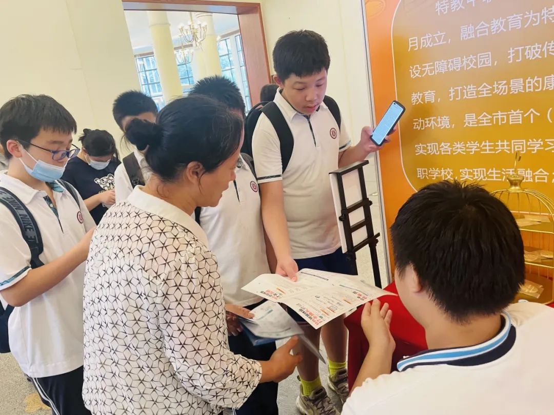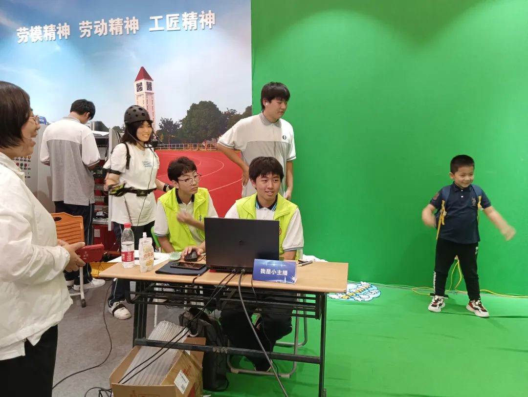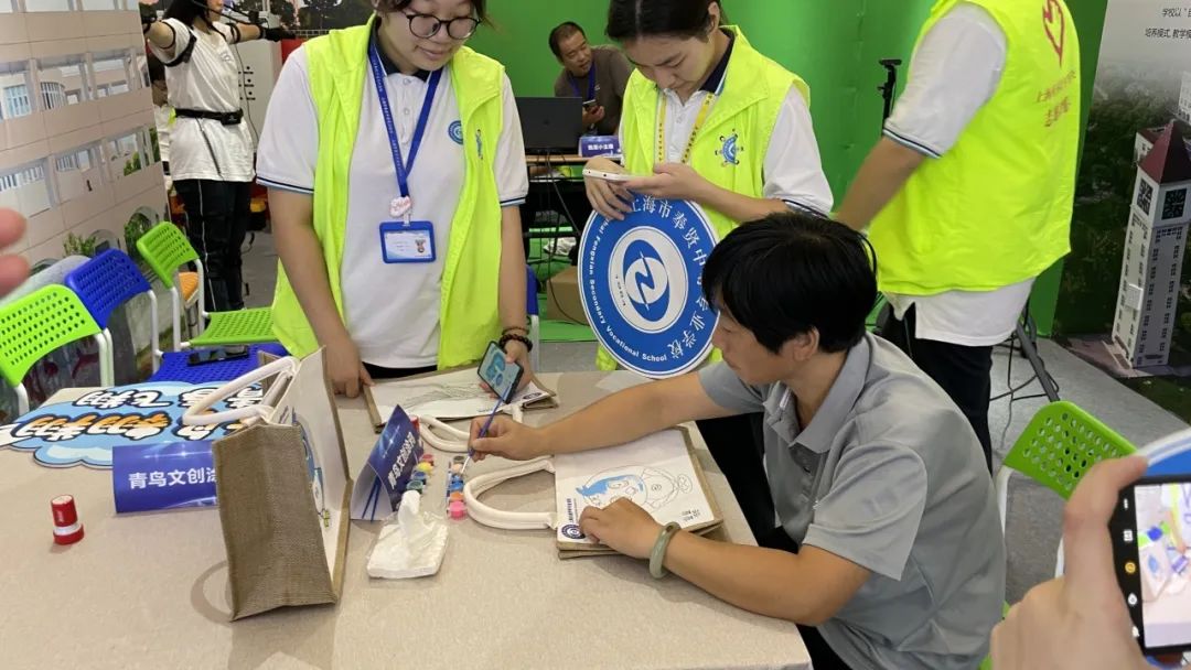 9月16日,教博会开展第二天,一如前日,人头攒动,热闹非凡。在我校特色专业展区(西一馆二楼Z18),不少观众亲身体验了“接线工匠”、“我是小主播”和“青鸟文创涂鸦”项目,真切体会职业教育的魅力。部分观众更是在体验完项目后,对我校产生了浓厚的兴趣,与现场几位优秀的专业教师进行交流,深入了解我校数媒、酒店和机电等专业内容。