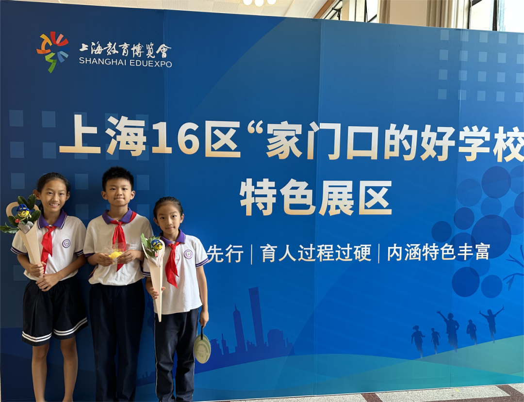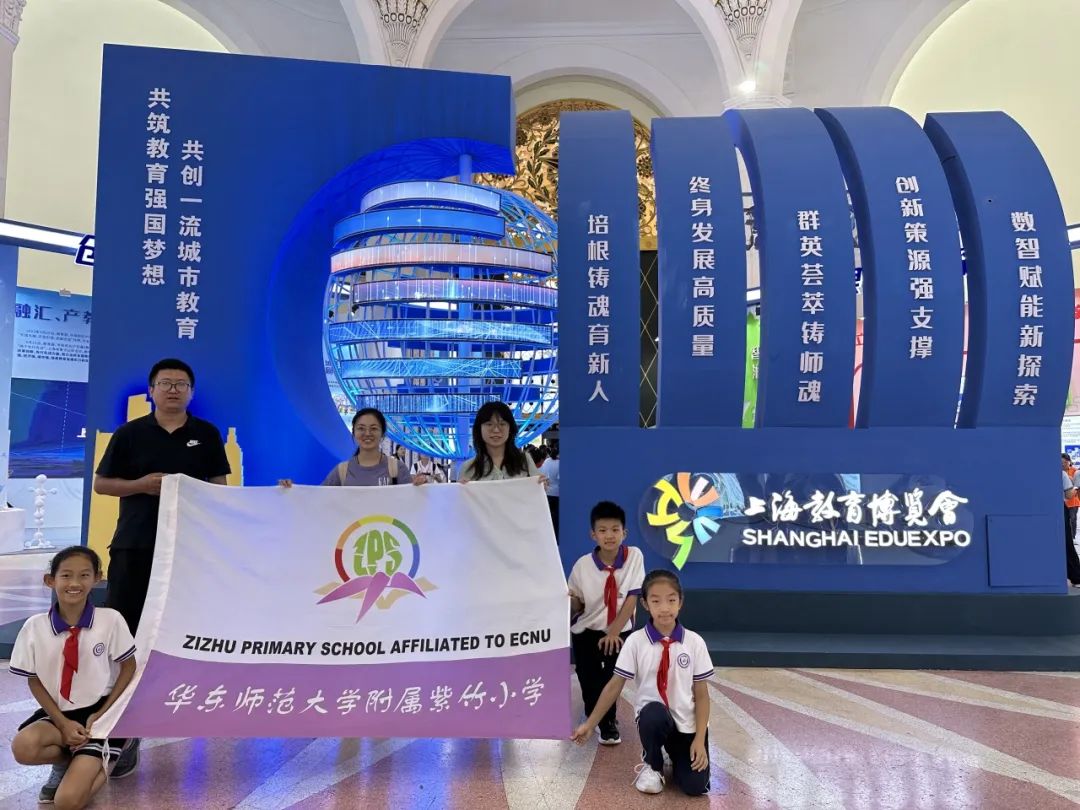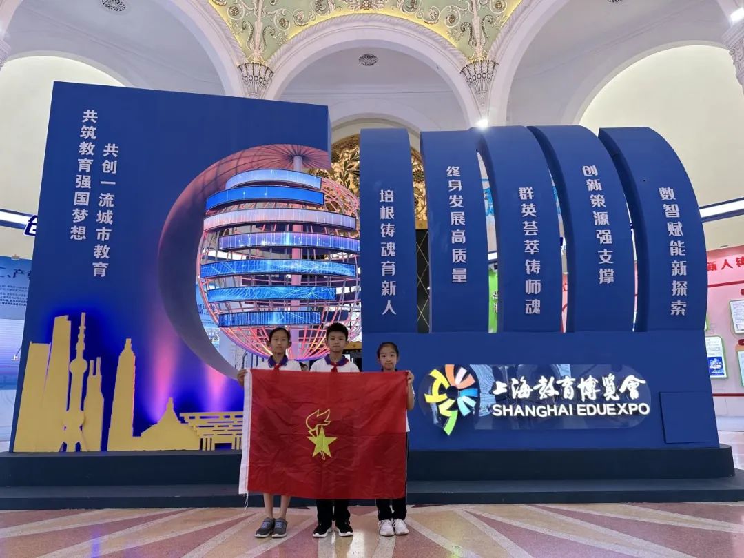 我校党员教师代表金海华;团员教师代表陈怡雯、孙玲南;学生代表四2中队的吕子墨、梅婧怡、夏陌宁,共同参与了第二十届上海教育博览会活动。