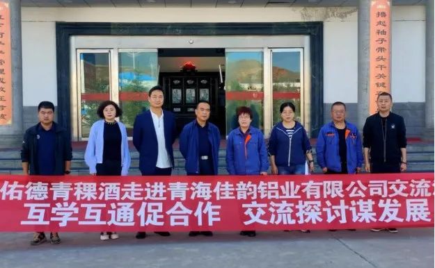 9月14日上午,青海天佑德青稞酒营销中心海东大区总监刘鹤财,营销中心散酒部部长王力,同仁办事处经理崔增巍,化隆办事处马骥,化隆经销商张珍等一行五人前往化隆青海佳韵铝业股份有限公司以“互学互通促合作,交流探讨谋发展”为主题开展企业经营管理交流活动。