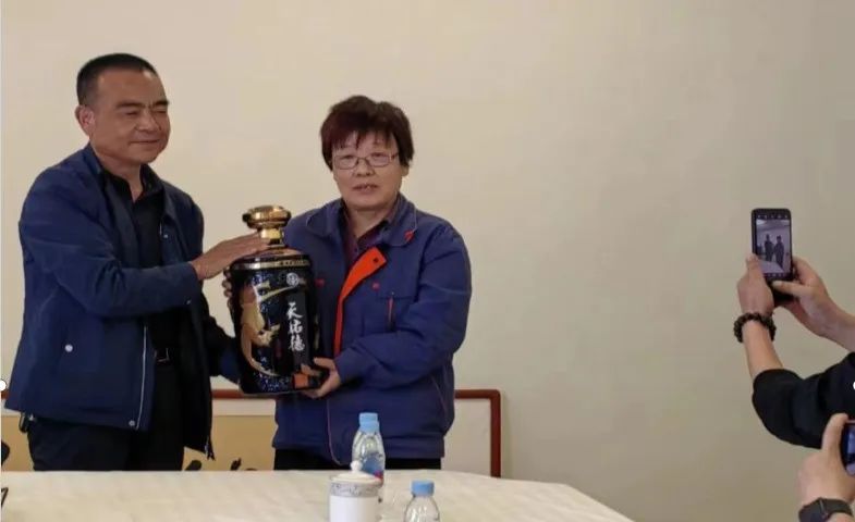 天佑德青稞酒公司作为中国上市白酒企业之一,在此次交流活动中,送出了十斤装国之德真年份纪念酒,传递着天佑德青稞酒公司对自身品质的信心,以及与企业开展深度合作的诚意。