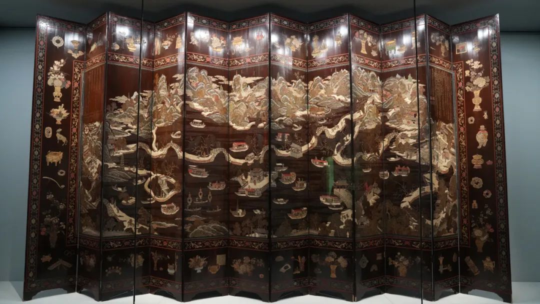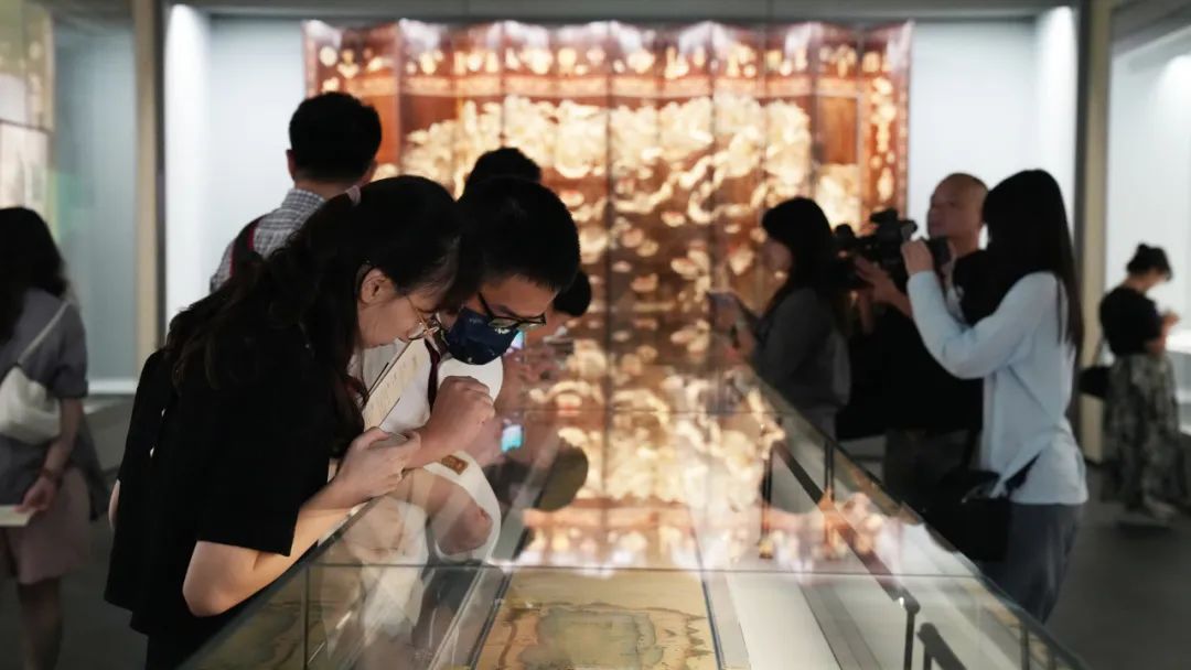 此次共展出文物400余件,其中有很多重磅文物。比如在第三单元展厅中央展出的《清乾隆西湖行宫图》,就是第一次以全貌的形式展现给公众。为了能够让观众欣赏到这幅画作的全貌,此次博物馆特别定制了10米长的展柜,配以最新工艺的低反玻璃,让观众能够从各个角度欣赏这幅内容丰富的画作,感受千年湖山传世之作。