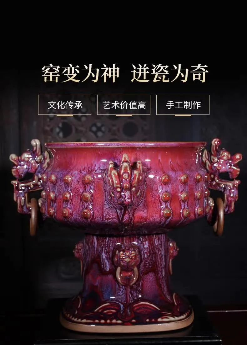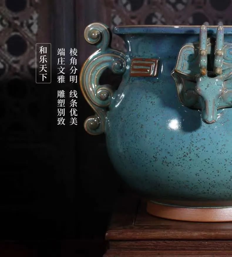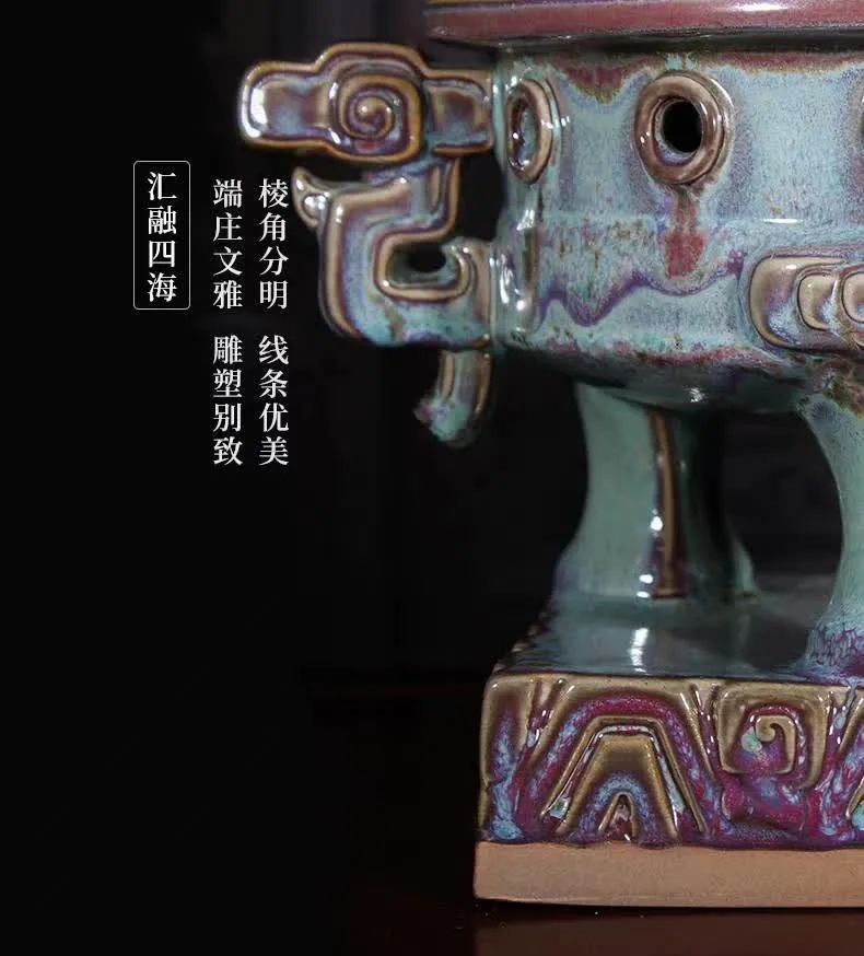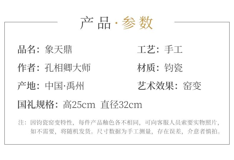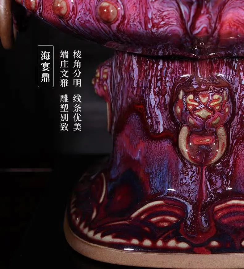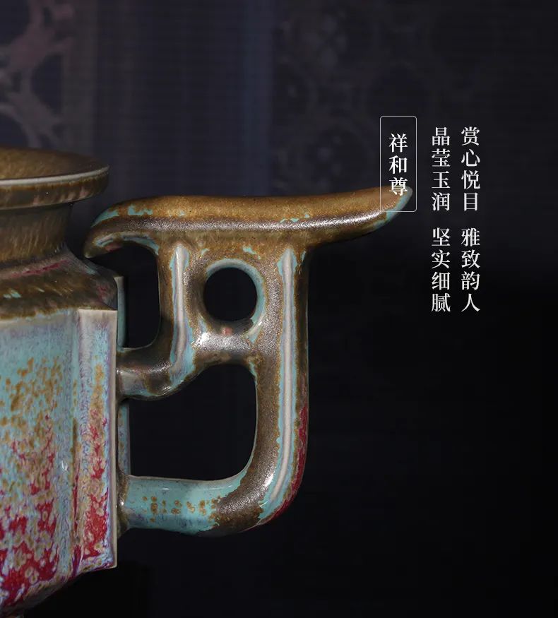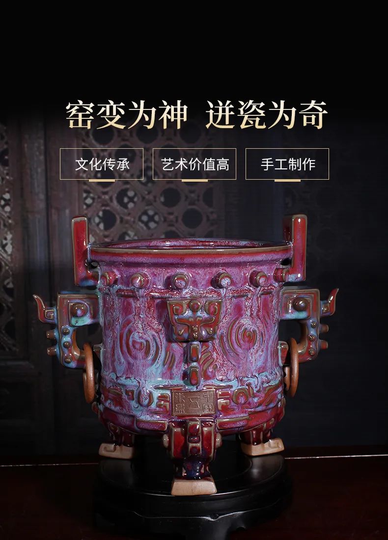 钧瓷位列中国五大名瓷之一,以“入窑一色、出窑万彩” 的自然窑变著称,深刻诠释了道法自然的精神。象天鼎,以中国最古老的艺术造型——鼎,传播博大精深的传统文化。