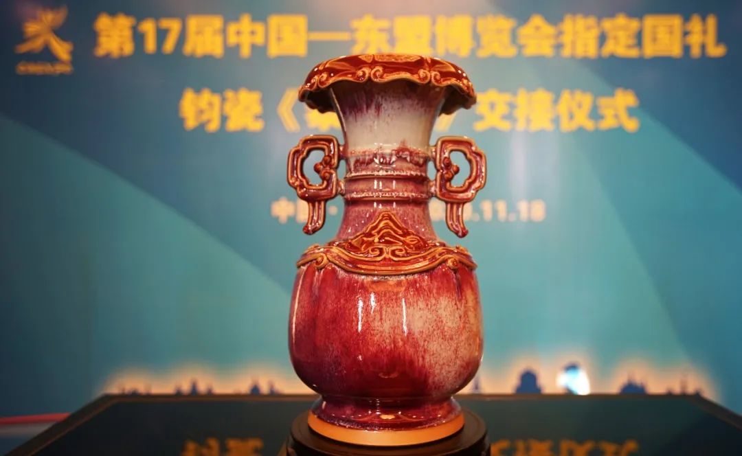 2020年11月18日,第17届中国—东盟博览会指定国礼《泰和尊》交接仪式在广西南宁市举行。由中国工艺美术大师孔相卿设计创作的钧瓷精品《泰和尊》被选定为第17届东博会指定国宾礼品,