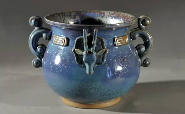 钧瓷颜色瑰丽,厚重鲜艳,青若蓝天。一件器物,可一色纯净,可几色辉映,加上变化莫测的流纹,其自然效果远非刻意追求和人工修饰所能及。体现出典雅大方,斑斓夺目、飘逸空灵的帝王之浩然之气。