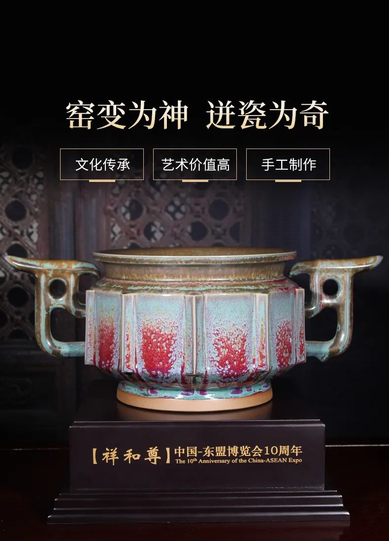 八、第十届中国—东盟博览会钧瓷国礼《祥和尊》