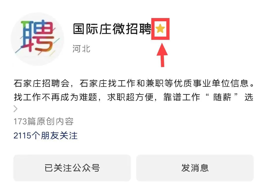 如果您想及时收到“国际庄微招聘”的文章,请一定要将我们设为★星标★账号哦(如图所示)