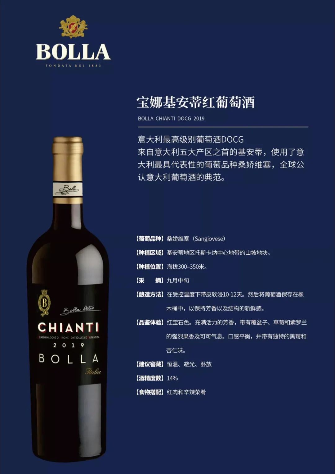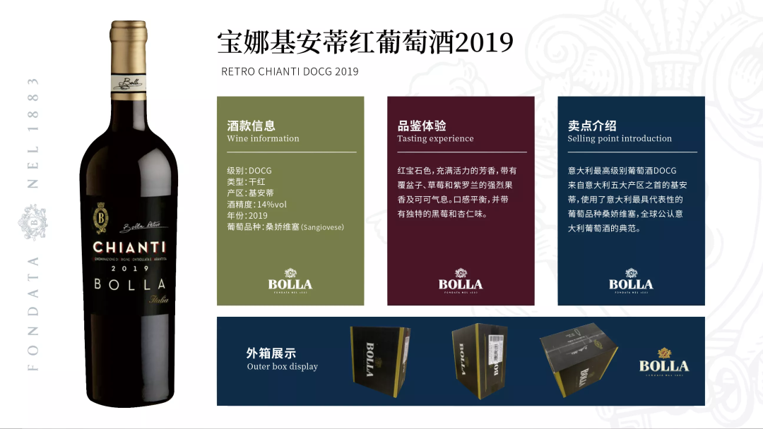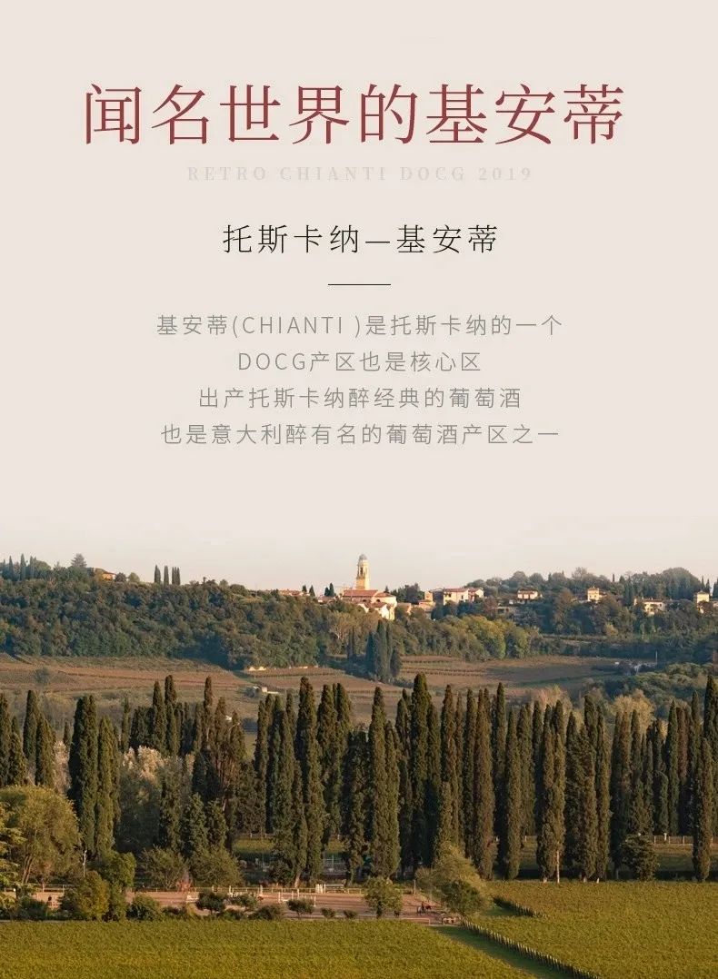 来自意大利五大产区之首的基安蒂,使用了意大利最具代表性的葡萄品种桑娇维塞,全球公认意大利葡萄酒的典范。