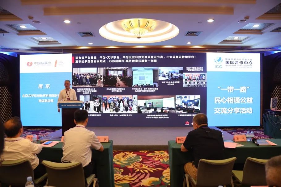 2023年9月15日上午,以“共建现代化慈善·聚力高质量发展”为主题的第十届中国公益慈善项目交流展示会在深圳福田会展中心开幕,为期三天。此次展会由民政部、国务院国资委、农业农村部(国家乡村振兴局)、全国工商联、中国红十字会总会、中国宋庆龄基金会、广东省政府、深圳市政府和中国慈善联合会共同主办。文华在线作为积极参与、助力“一带一路”公益行动的优秀企业代表受邀参展。展会期间,文华在线高级副总裁唐京博士代表公司应邀出席由国家发展改革委国际合作中心举办的“一带一路”民心相通交流分享会,并作主题报告。会上发布了《“一带一路”企业公益行动案例集》,文华在线为中资企业与教育出海提供国际化平台、师资培训等项目入选。