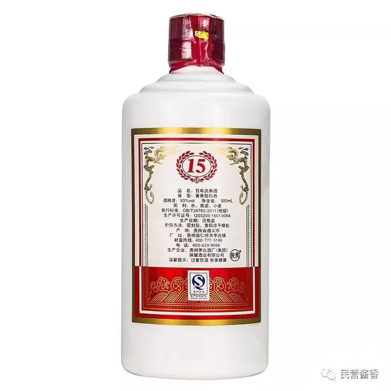 百年庆典酒(15)采用贵州茅台镇本地小红粮严格按照12987传统工艺酿造,以优质原酒,精心勾兑,多粮酿造;承袭茅台尊贵品质,其酒质晶亮透明,畅杯不饮,香气扑鼻,开怀畅饮,满口生香,无论是送礼还是自饮都是不错的选择,是您馈赠,宴会之佳酿。