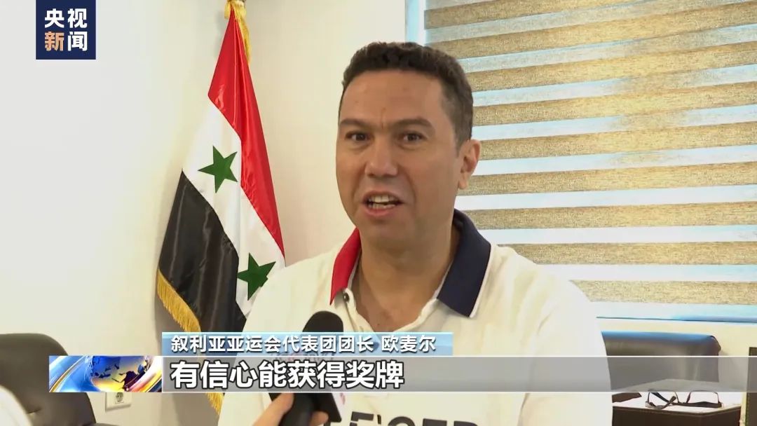 叙利亚亚运会代表团团长欧麦尔:我们挑选了我们最好的运动员,有信心能获得奖牌。杭州很漂亮,到处是鲜花。我们期待与中国在体育事业上有更多合作。